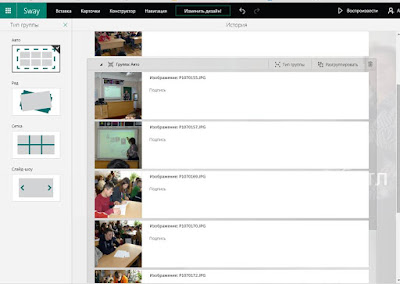 - Приклади презентацій (сторінок, історій, звітів) Sway: